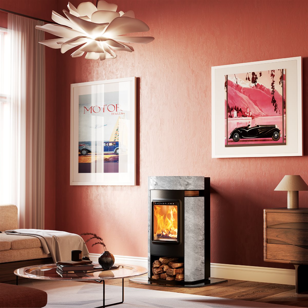 Mentre le fiamme danzano nel focolare, il massiccio rivestimento in pietra immagazzina calore e lo rilascia, per ore, dopo l’ultima carica di legna, sotto forma di piacevole calore radiante.