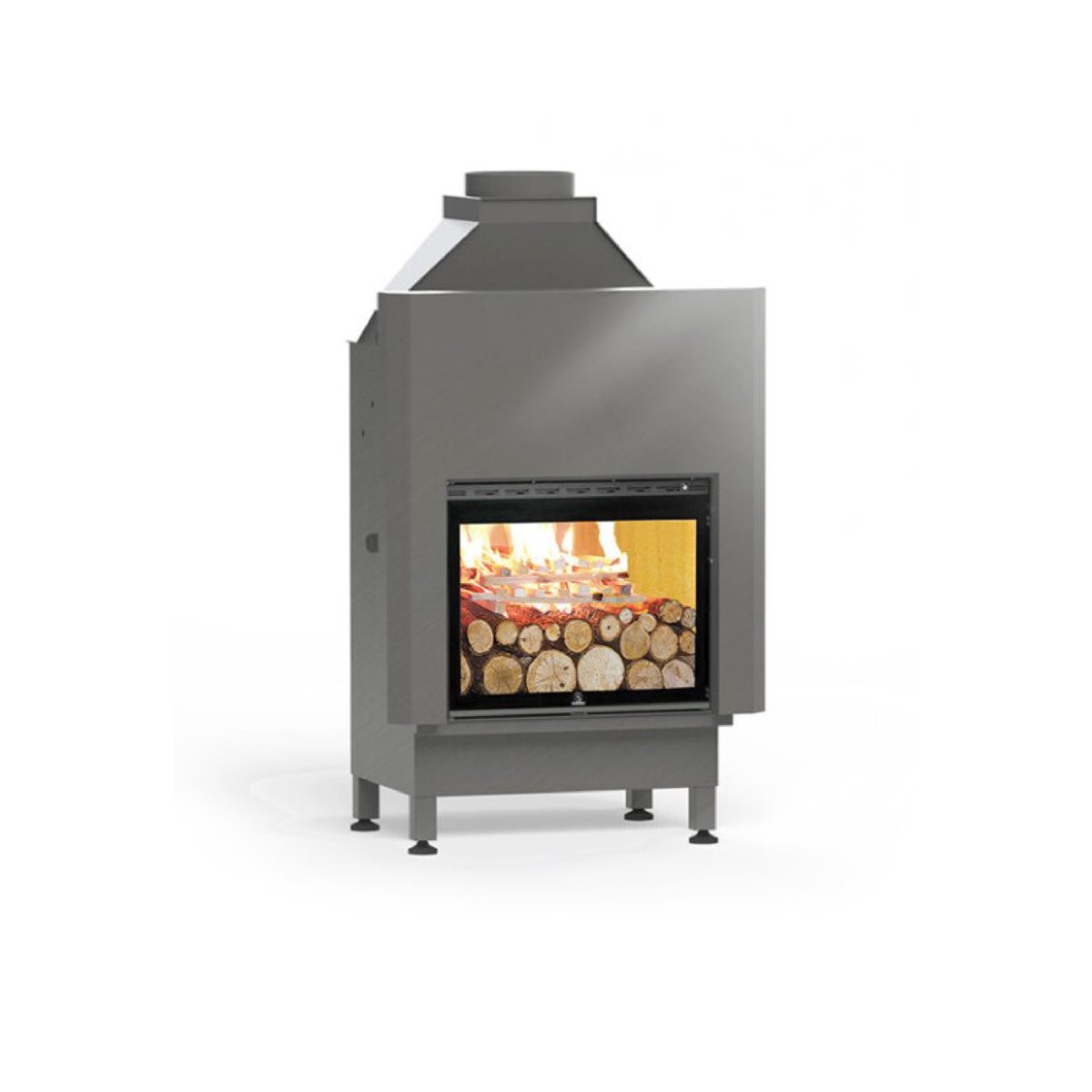 Termocamino ad alta efficienza con accensione dall’alto e camera di combustione special a camera secca.