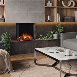 Il camino elettrico eReflex Outset 55RW è il più piccolo della serie con il quale si può vedere il fuoco da 2 o 3 lati, può essere inserito in una costruzione di cartongesso, legno o qualsiasi altro materiale e vi porta via pochissimo spazio perchè è profondo solo 30,2 cm.