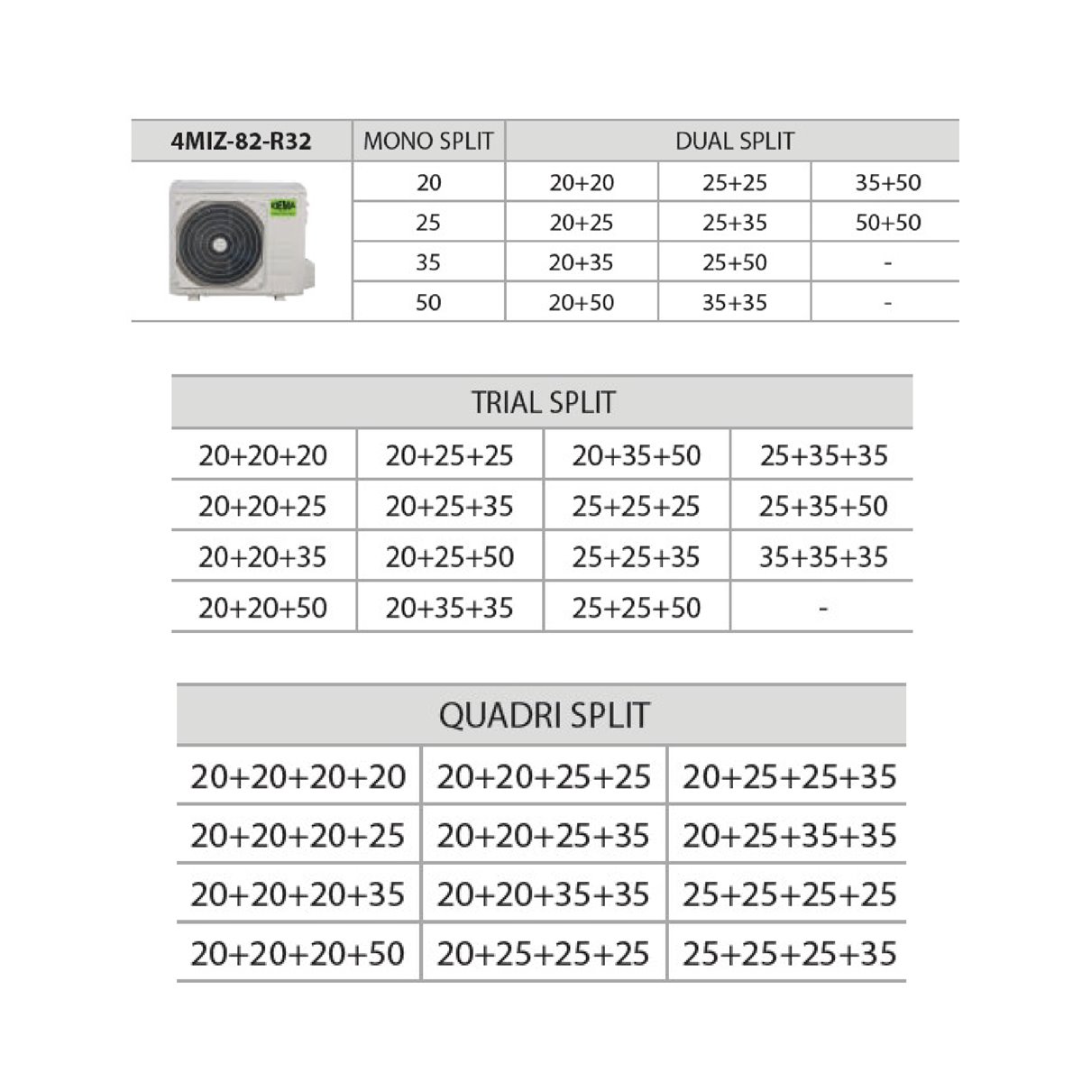 Quadri Split 4MIZ-82-R32 8,2 Kw