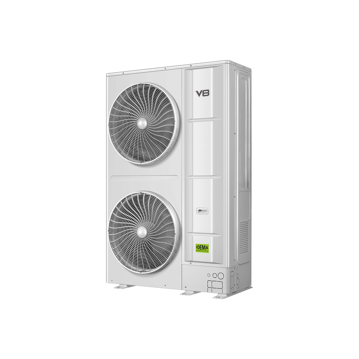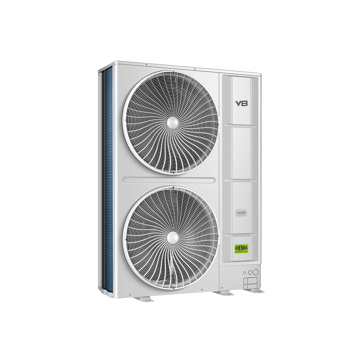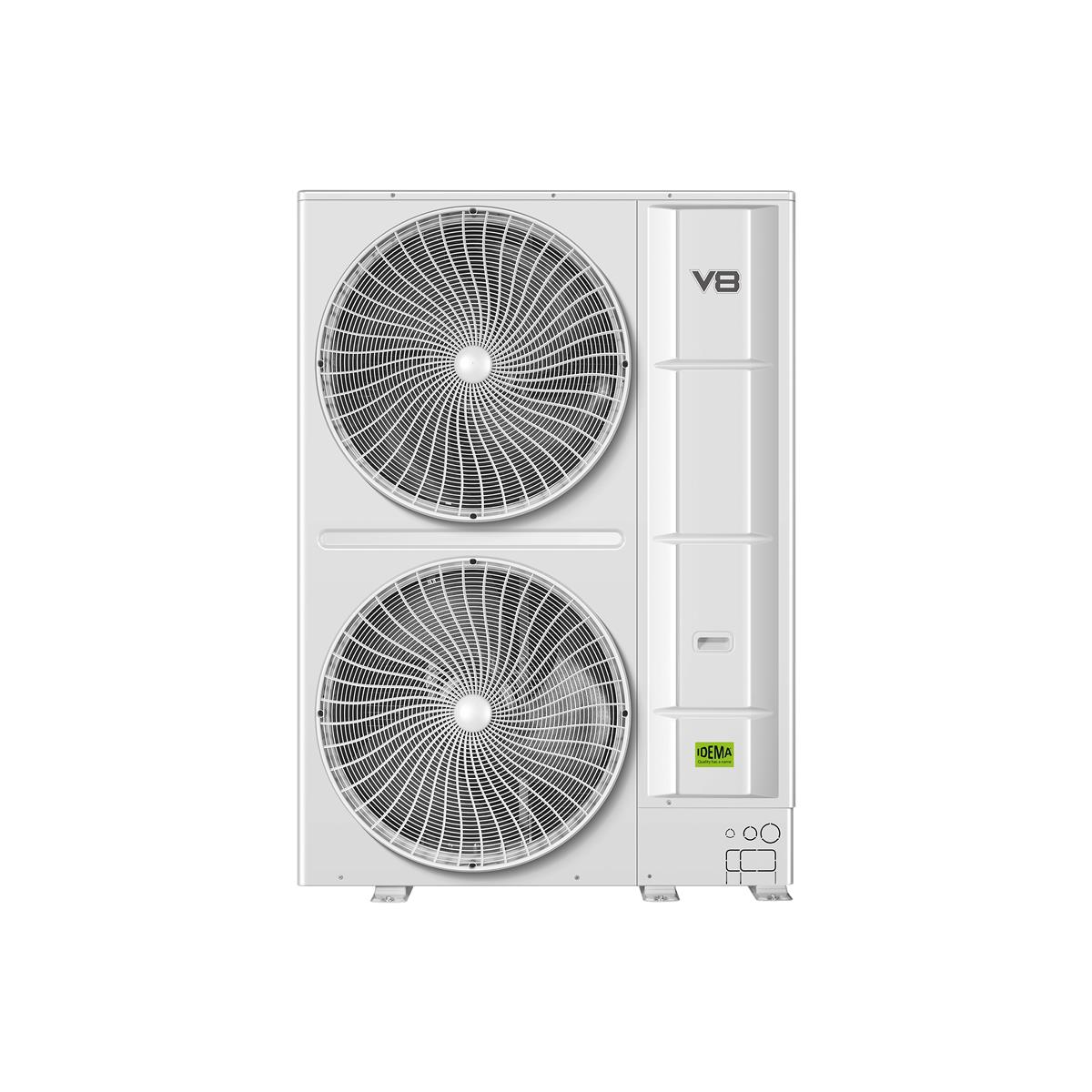 Unità esterne VRF IV8S con gas refrigerante R410A per impianti a 2 tubi con gamma di potenza da 25,2 kW (8 HP) a 246,0 kW (22 HP) collegando fino ad un massimo di 4 unità esterne; il numero massimo di unità interne collegabili varia da 13 [25,2 kW (8HP)] fino a 64 [246,0 kW (22 HP)]. Supporta una lunghezza delle tubazioni fino a 560 m con un dislivello di 50 m. L’ottimizzazione del ventilatore ad alta pressione statica fino a 80 Pa (predefinito 0~35 Pa) è in grado di adattarsi ai vari