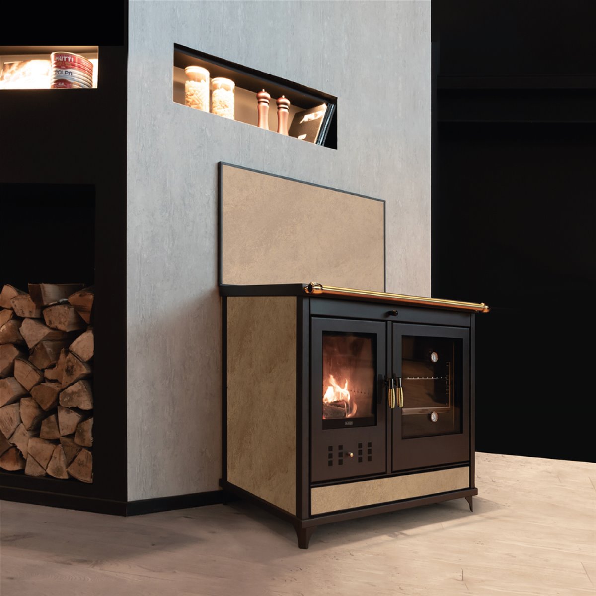 Il calore diventa esperienza viva, avvolta da materiali nobili e dettagli senza tempo, dove la solidità della ghisa incontra la morbidezza del gres e il calore del metallo satinato.