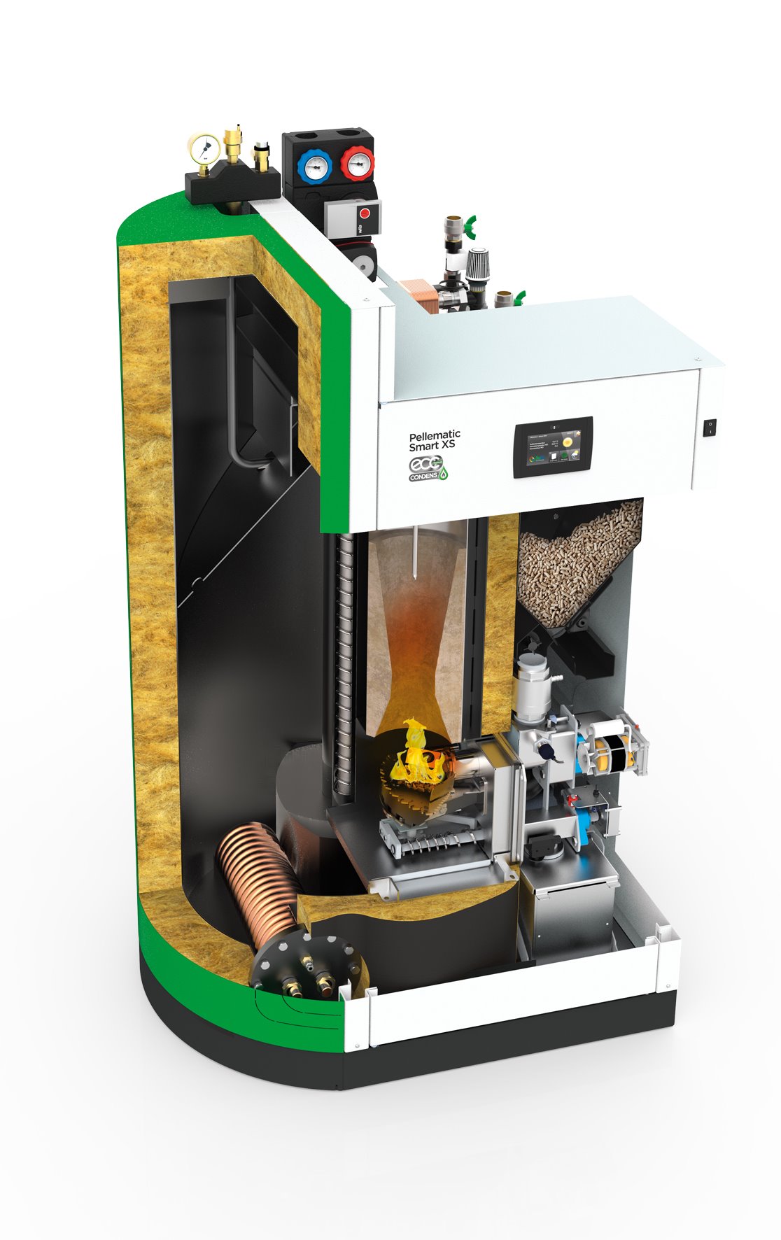 Grazie alla concezione completamente nuova della tecnica di condensazione Condens, la Pellematic Condens è la prima caldaia a pellet con tecnica di condensazione al mondo a poter essere integrata in tutti i sistemi di riscaldamento.