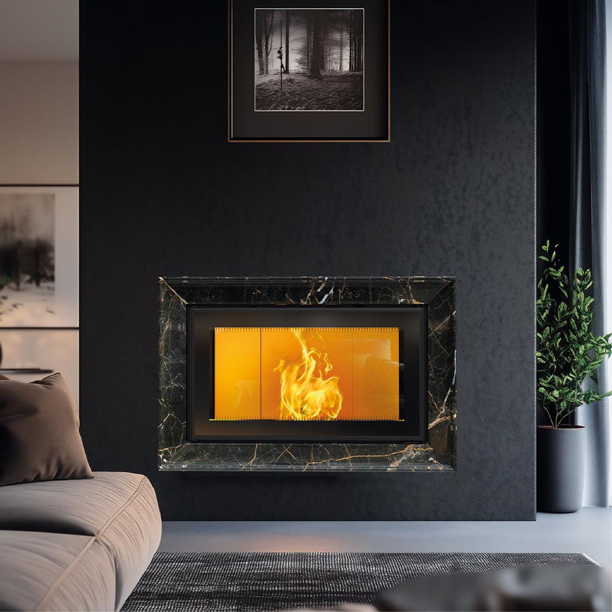– una ventola centrifuga con uscita frontale verso l’ambiente con vista fuoco o disponibile alla canalizzazione verso altri ambienti