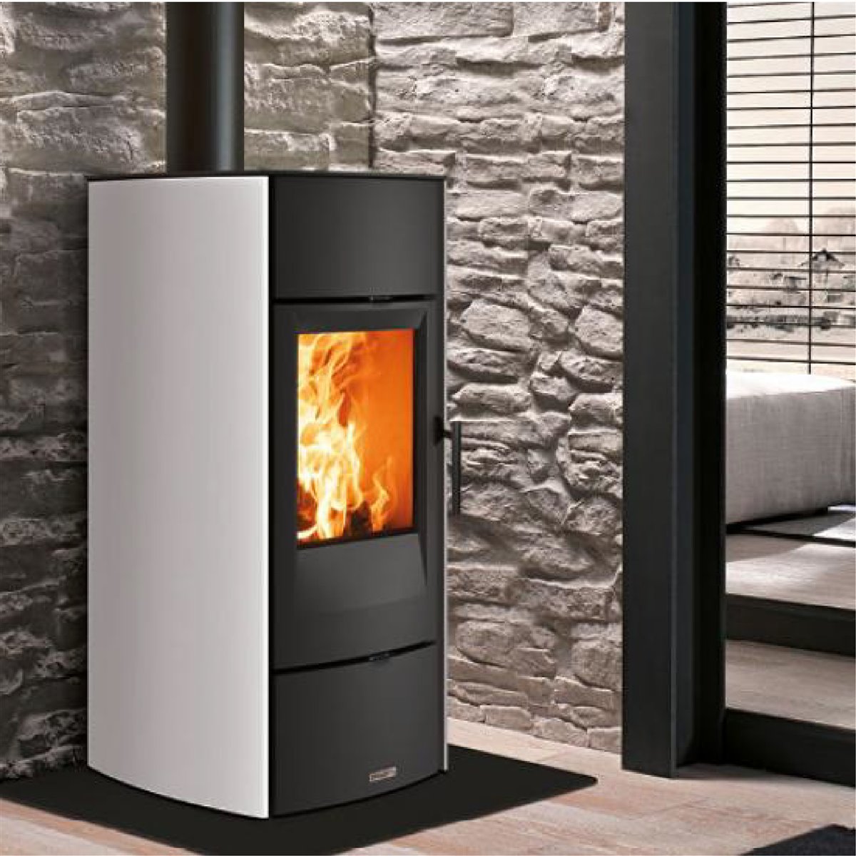 Stufa di design semplice e moderno che si fa apprezzare per le sue geometrie. La sua struttura elegante è caratterizzata da linee pulite. Il suo rivestimento in acciaio aggiunge un tocco di raffinatezza all’ambiente circostante, nei colori Bianco, Cor-Ten, Nero.