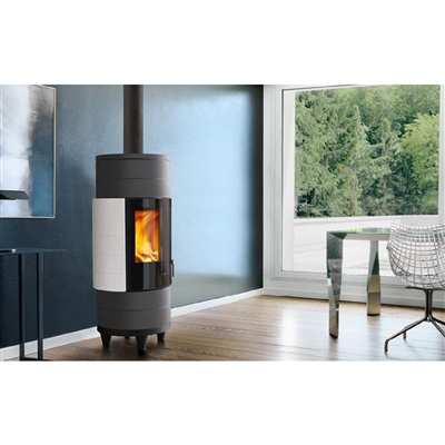Stufa a Legna ermetica modello CIRCLE a convezione naturale, con rivestimento in Maiolica, installabile a Centrostanza - Parete - Angolo.